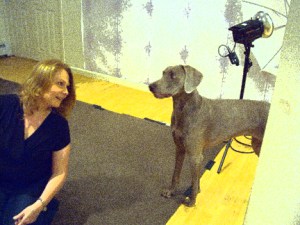 In dogs, humor, pets, weimaraners, writing on 07/07/2011 at 7:35 pm“Oh my God, my portraits are ready for review. I CAN’T WAIT! Tomorrow Patti and I go back to Tracy’s to see them. I hope they’re better than the ones Patti took during “The Making Of” with her crappy little digital brownie. Did someone say BROWNIE? Am I drooling? Do you think I’m cute? I wonder where Patti will display my pictures. I hope I don’t eat them. I liked my photography session, it was fun. Tracy is nice too. Although 90 minutes was pushing it. I have a short attention span you know. Can I have an ice cube? I’ll bet that BIRDS don’t get their pictures taken like this. Geez, my nails are long. PATTI, WHEN DO WE GO TO THE SALON TO GET MY NAILS DONE? She’s ignoring me. She’s probably sitting on top of my porcelain water bowl in that tiny room that she always closes the door to. What DOES she do in there? I like sweets. Do you have any? Where was I? No, not metaphorically, literally. I hope I look beautiful in my portraits. Patti says I look breathtaking. I don’t know what that means, but she beams when she says it so it must be good. She sure does love me. I love her more than I love chasing birds. Was that my stomach growling?”