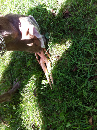 In dogs, humor, lifestyle, pets, weimaraners, writing on 09/15/2011 at 8:04 pmThis morning, Olive and I were treated to a pre-autumnal acorn shower. Standing under a skyscraper of an oak tree on the grounds of the local college campus, acorns rained all over us, slipping through the canopy of leaves with a musicality that was impressive. I wish my iphone would have picked up this sound better, but you can imagine how frequently they dropped just by observing the movement of Olive’s ears. This symphony of nuts is interrupted only by a car door being shut, but keep watching for when Olive realizes that these things are falling from above and looks up into the abyss of the tree. It was all very cool.