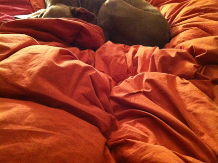 In dogs, humor, lifestyle, pets, weimaraners, writing on 09/05/2011 at 7:03 pmWhenever Olive and I return home from the local dog park, she marches upstairs to the master bedroom wordlessly, hops onto the bed and collapses like a drunken old lady into a deep slumber from which she does not want to be disturbed. There may as well be a cartoon sign that floats above her that says: “DO NOT TOUCH. DO NOT KISS. DO NOT PET. DO NOT STARE AT ME WHILE I’M SLEEPING. AND DON’T EVEN THINK ABOUT TRYING TO CLEAN MY EARS. HOW WOULD YOU LIKE ME TO CLEAN YOUR EARS WHILE YOU’RE SLEEPING? AND I MEAN IT. ALL OF IT.” She’ll stay there, curled up like an overgrown, unhurried fetus for hours. The only way I know she’s still alive is that I hold a mirror up to her big brown nose and watch her breath cloud it up. Just kidding. I do love standing over her though, listening to her snore peacefully and very contentedly. Who knows what she’s dreaming about. Probably the same things we do, only in her dreams, it’s the dogs that speak and around whom all the action revolves. The humans just stand around like tree trunks, barking incessantly in the background. “I’M GOING TO HAVE TO LEAVE SOON, I HAVE TO DO A LOAD OF LAUNDRY,” says Olive in her dream. “LAUNDRY?” Says Kira, the snow white Boxer. ‘WHY DO YOU HAVE TO DO LAUNDRY? DOESN’T YOUR HUMAN DO THAT?” “YES,” replies Olive, “BUT SHE SHRINKS ALL MY BED LINENS.” I guess we imagine that emotionally our dog’s lives would be pretty much like our own, but most in the veterinary world would say we’re anthropomorphizing. So what. You fantasize, I’ll anthropomorphize. When you think about it, they’re both imaginary pursuits.