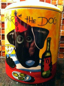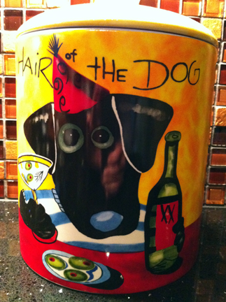 In dogs, humor, lifestyle, pets, weimaraners on 10/29/2011 at 12:41 pmI ask you…How could I not get Olive this handpainted ceramic biscuit jar from Mary Naylor Designs when her name is pictorially represented on it? I actually preferred one of the other designs, but there was no way I could bypass a design that had olives painted on it.