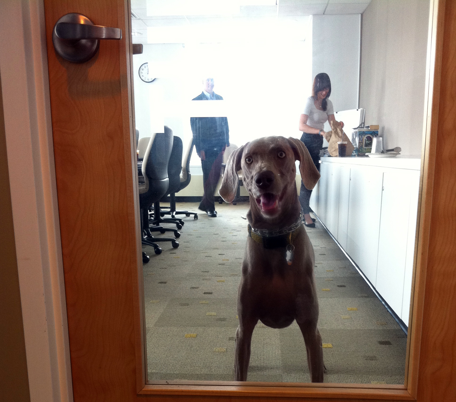 In dogs, humor, lifestyle, pets, weimaraners, writing on 10/08/2011 at 7:26 pmAs Olive and I walked leisurely across the grounds of the local college early yesterday morning, we crossed paths with a student on his way to class. “Good Morning,” I said. “Good morning. How are you?” said the young stranger with the characteristic idealistic tone that only the young and newly independent can enthusiastically muster. “Fine thanks,” I replied. “MAN, YOUR DOG HAS CRAZY EYES,” he noted as we passed. I chuckled. “Ya’ think?”
