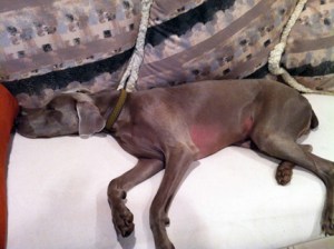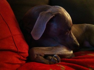 In dogs, humor, lifestyle, pets, weimaraners, writing on 09/08/2012 at 3:29 pmNapping With Olive