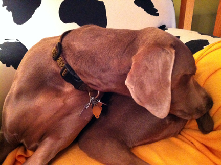 Yowza. When did I get these? Many thanks to the Hysterectomy Fairy. Yes, dogs are capable of sarcasm. Especially Weimaraners. Looks I like I should be reading a book by I.B. Cow, not E.B. White. Would you like a glass of milk?