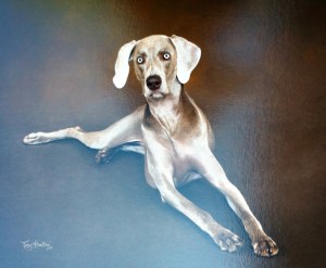 In dogs, humor, lifestyle, pets, weimaraners, writing on 08/12/2011 at 7:38 pmNotice the ambiguity in Olive’s facial expression in the portrait above. Is she registering surprise, confidence, or an intellectual curiosity? Her head, front paws and back legs form the shape of a pyramid. Her right ear, cocked ever so slightly, draws the viewer’s eye to the powerful apex of the pyramid’s base. The left paw, extending beyond the right and positioned forward, hints at an independent, dominant nature. Her eyes as wide as UFOs stare directly into the viewer’s soul. Does this make you uncomfortable? Stare directly into Olive’s eyes. What do you feel? Do you have an uncontrollable urge for a bully stick? Do you feel an inexpressible need to dig a hole to the center of the earth, eating the insect-filled dirt along the way? Have you just leaped across the room onto the couch? And does the water in the toilet beckon to you with an uncontrollable desire? Wait a minute. Sorry. Olive has been channeling me again. “YES OLIVE, THIS IS ONE OF THE PRINTS FROM YOUR PHOTOGRAPHY SESSION. AND YES, YOU ARE MUCH PRETTIER THAN THAT HAG MONA LISA.”